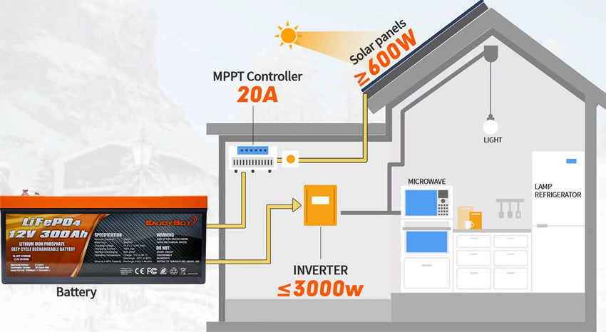 You may not know there is another reason to use a high-capacity battery. The more current (amps) is drawn, the faster the charge wears down. Running a microwave oven every day even for a few minutes can take its toll on the battery. But if you use a deep cycle lithium iron phosphate (LiFePO4) battery, you won't meet this problem. It has a BMS technology to protect the battery itself; the deep discharge is as high as 90%-100%, and the lifespan reaches 3000-5000 cycles. For example, assuming a 1200-watt microwave needs a 250ah AGM battery to operate, and most AGM batteries have only 50%-70% DOD. Although this is enough power to run the microwave, the battery will be drawn quickly. If you use a lithium iron phosphate (LiFePO4) battery you can discharge it down to 90% or even 100%.