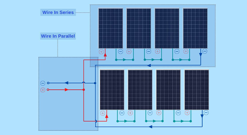 A battery bank is simply multiple batteries connected in series or parallels. Batteries are where power energy from the solar panels is stored.