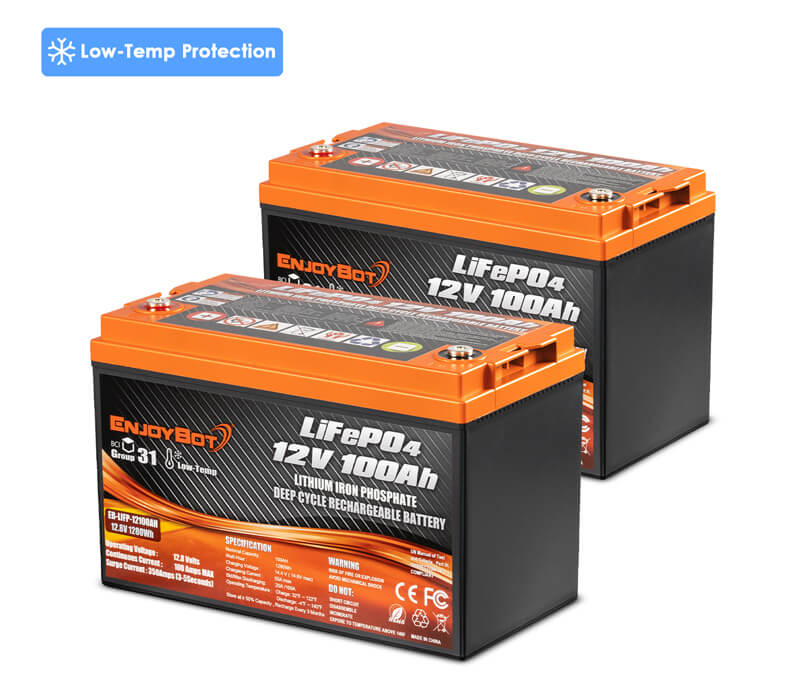 Enjoybot LiFePO4 Deep Cycle Battery - Designed specifically for use as a household battery in RVs, Trailers, Campers and Vans, it is the ultimate alternative to traditional AGM or lead-acid batteries. Compared to conventional batteries, Enjoybot LiFePO4 RV battery runs twice as long, lasts 4X longer, half the weight, and 5X faster charging speed. Experience exceptional performance and embark on your travels with confidence. Enjoybot LiFePO4 RV Lithium Battery is maintenance-free, fast-charging, and environmentally friendly, providing reliable power for peace of mind and the peace and tranquility of being at home.
