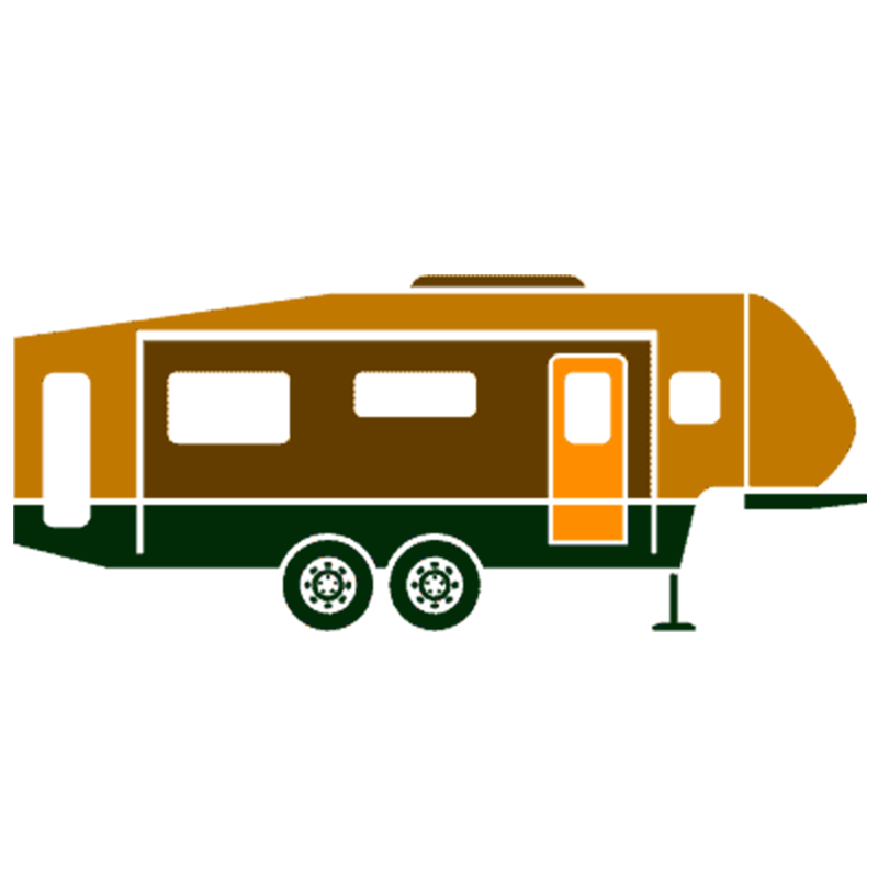 Description: A large towable RV that connects to a pickup truck bed. More spacious and stable than regular travel trailers.