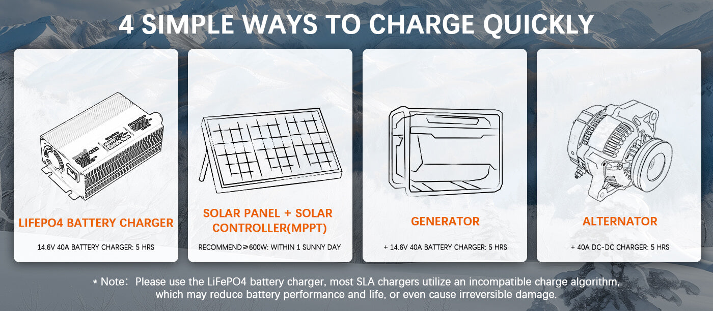This 12V 200Ah LiFePO₄ battery has an automatic cutoff that stops charging below 32°F and resumes charging at 41°F. It ensures safe use in cold weather.