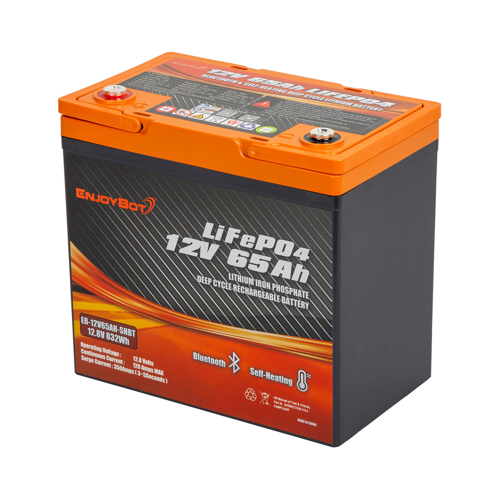 Enjoybot 12V 65Ah LiFePO₄ Lithium Battery with Bluetooth & Self-Heating, Group 22NF, 832Wh, 120A BMS