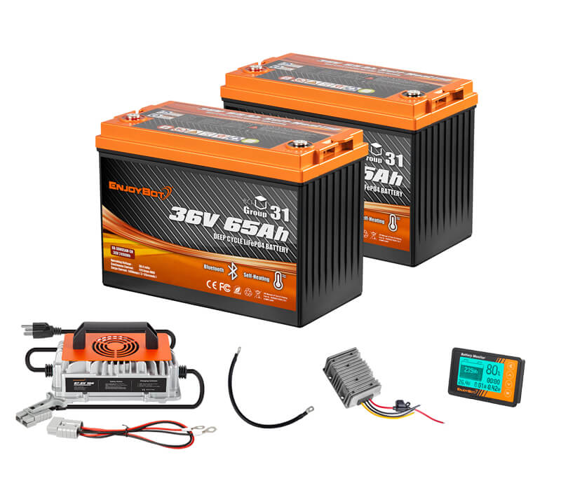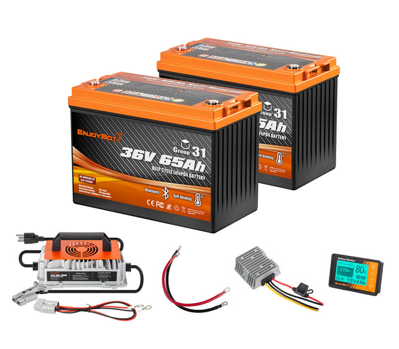 Is one 36volt 65ah big enough to run a golf cart? Enjoybot 36V 65AH LiFePO4 battery can support 36V golf carts with motors not exceeding 5kw and controllers not exceeding 500A. Compared with the 36V 100AH battery, its capacity is only 65AH, which is smaller. It is more suitable for owners who do not need to drive the golf cart for a long time.