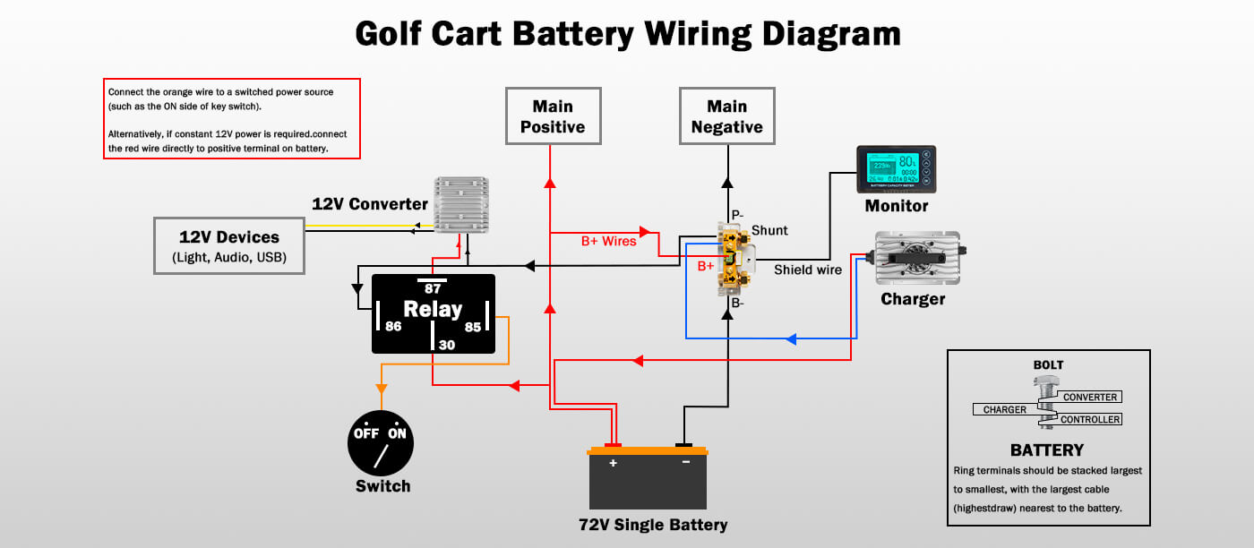 Our 72V golf cart battery can handle handles up to a 5kW motor with a 500A controller. For higher-performance setups, simply connect two or more. Most 72V golf carts have room to fit multiple units